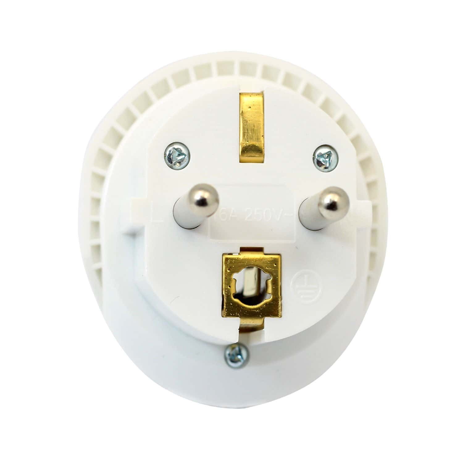 El adaptador enchufe es muy resistente a los golpes permite adaptar facilmente cualquier enchufe a un enchufe de 2 polos espiga redondas para conexiones eléctricas.