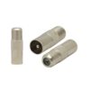 Permite la interconexión entre cables coaxiales estándar utilizados en sistemas de TV analógica y digital. Su estructura metálica proporciona buena conductividad y ajuste firme para evitar pérdida de señal.