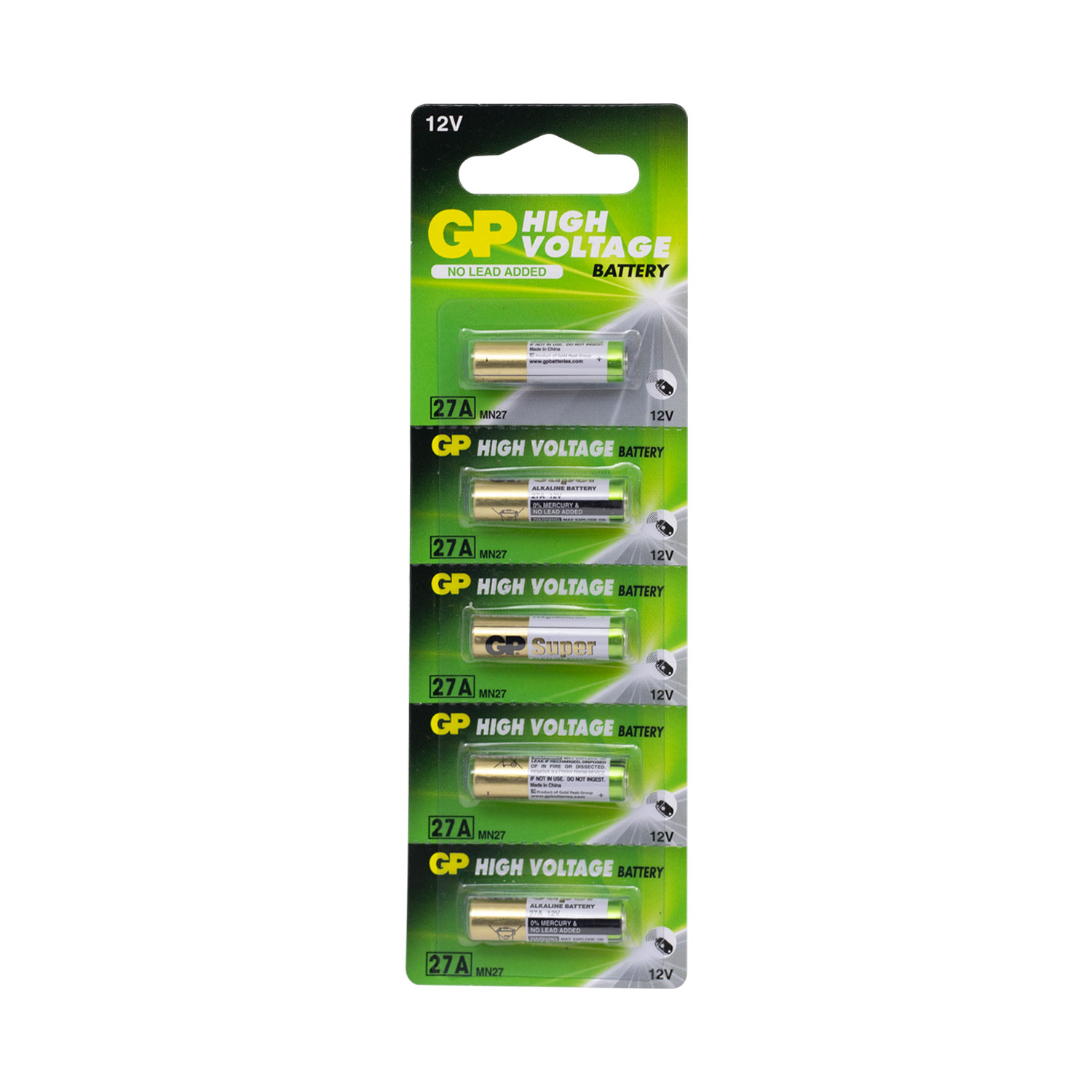 Batería Alcalina 27A de 12V, ideal para alarmas, relojes, controles y sensores, de alta durabilidad, blíster set de 5 UND.