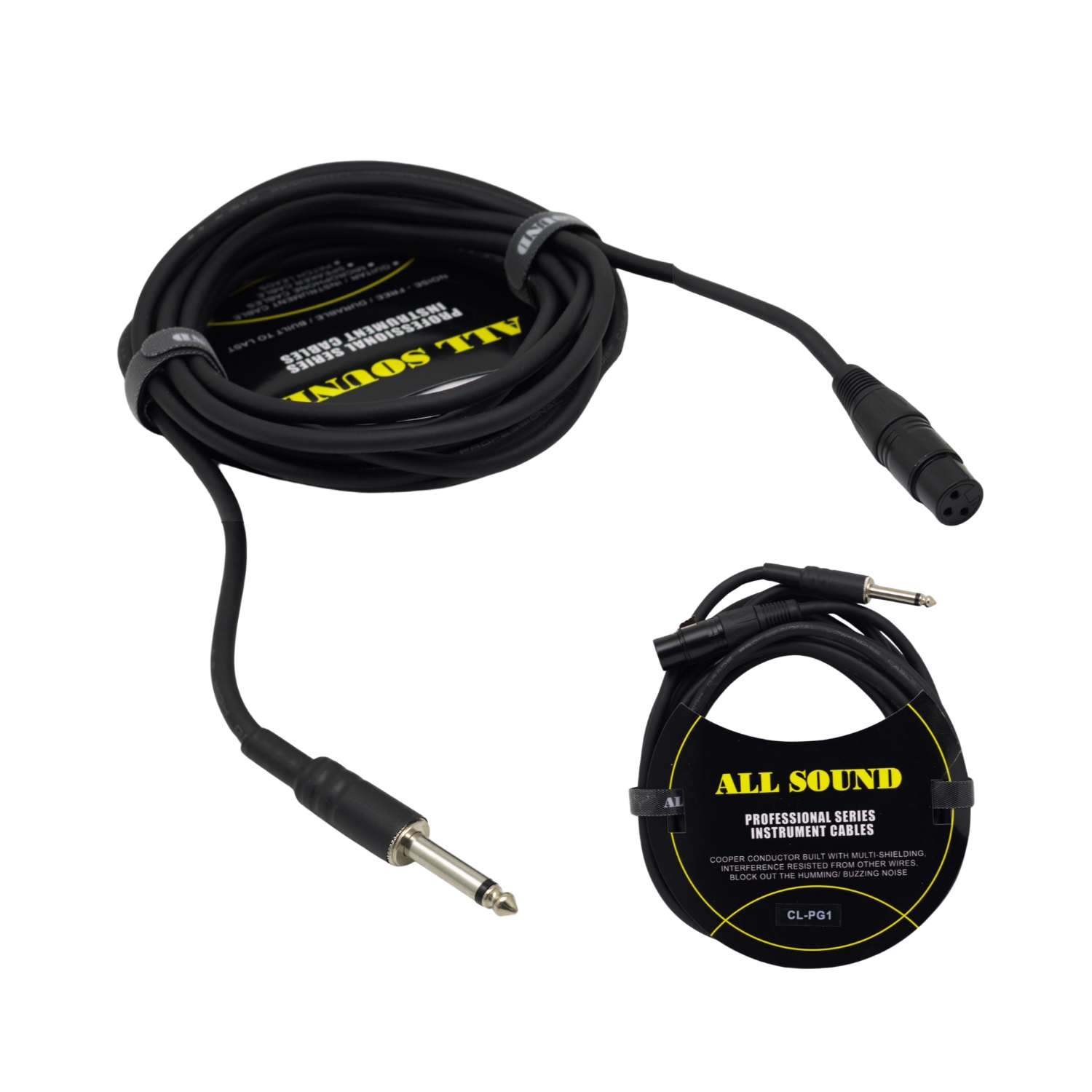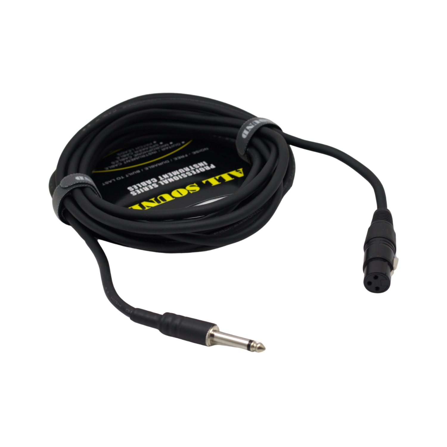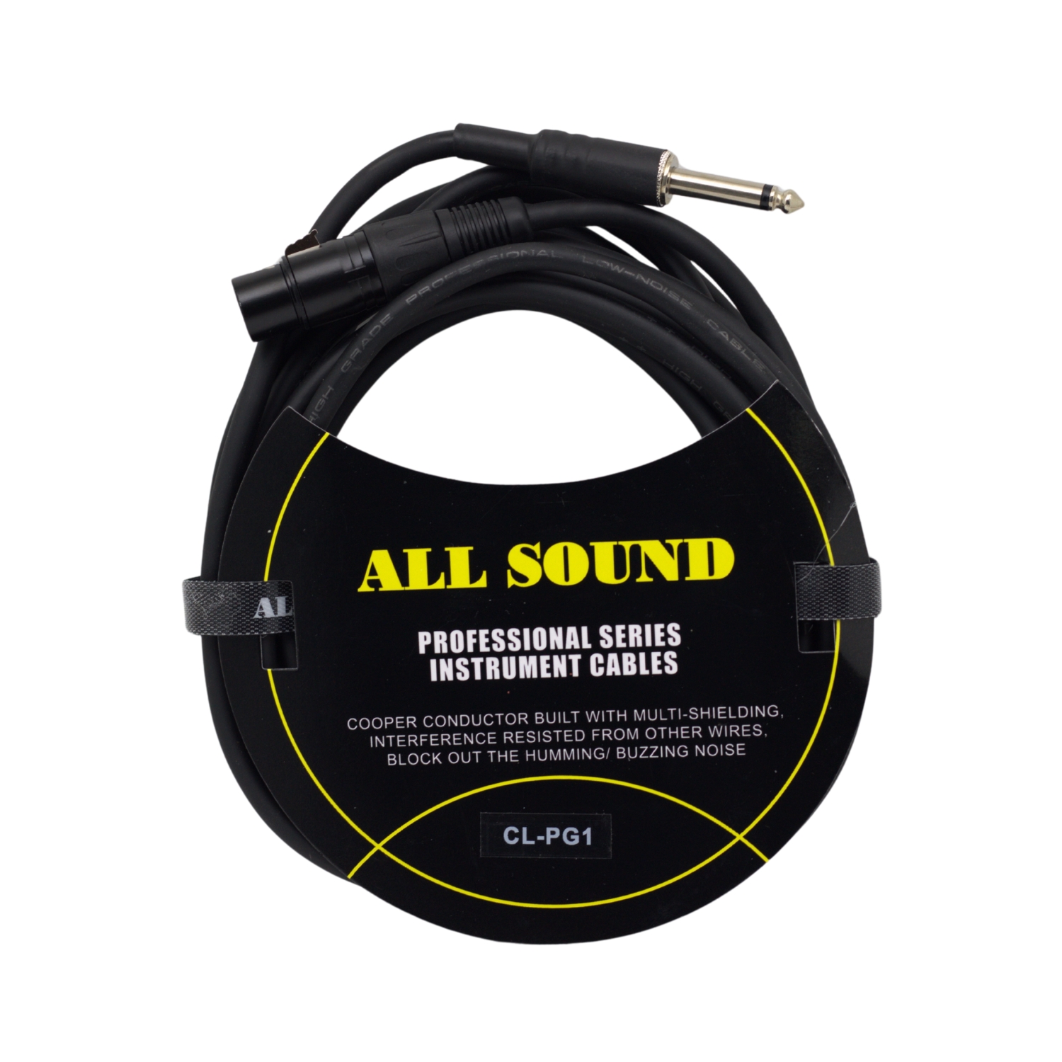 Utiliza un cable monaural de 1 canal con conectores Plug 6.3 mm macho y Jack Cannon XLR3 hembra. Cuenta con terminales plateadas y carcasa metálica en ambos extremos. Fabricado en PVC flexible y resistente, con una longitud de 5 metros diseñada para escenarios amplios y equipos de audio profesional. Adecuado para micrófonos dinámicos y sistemas de sonido estándar.