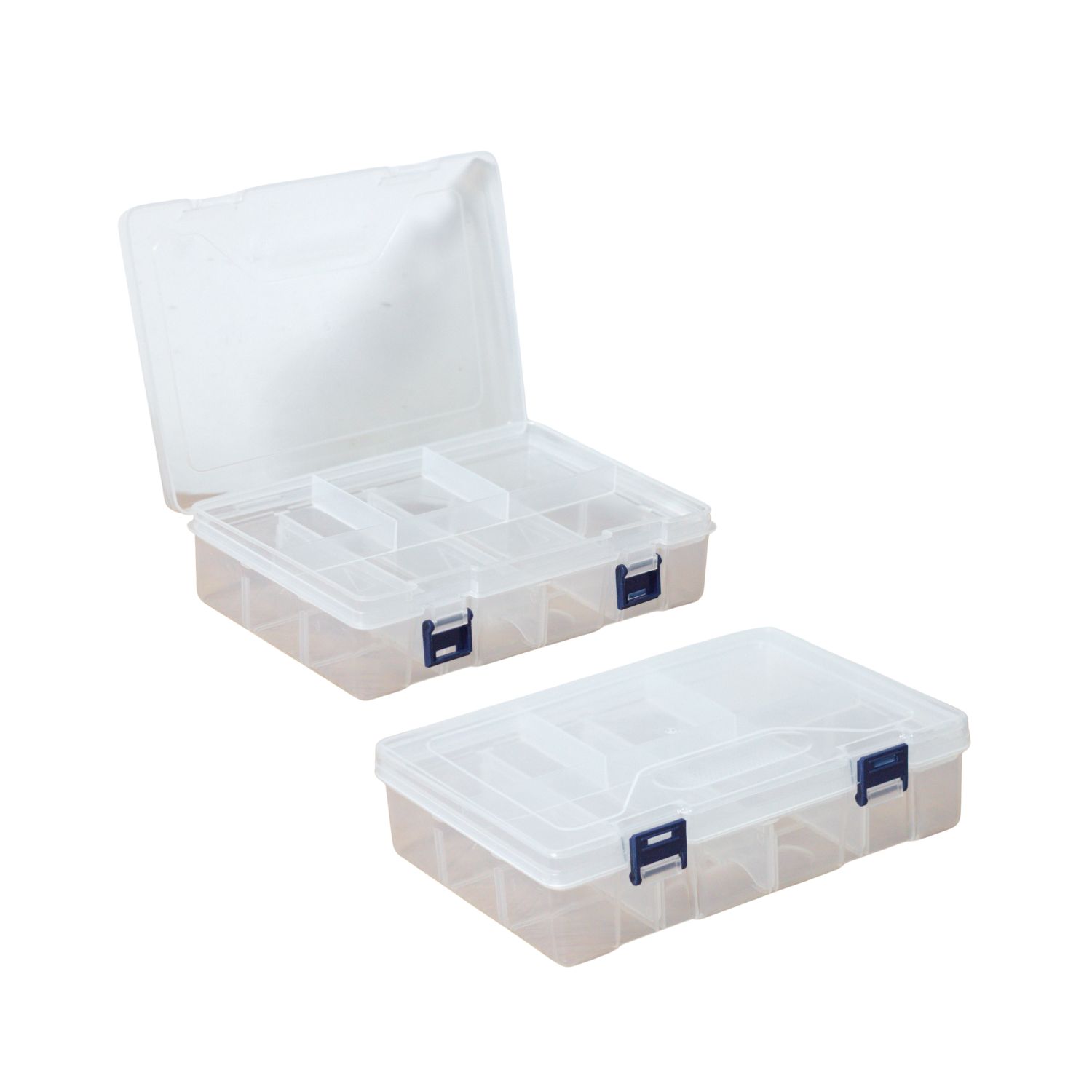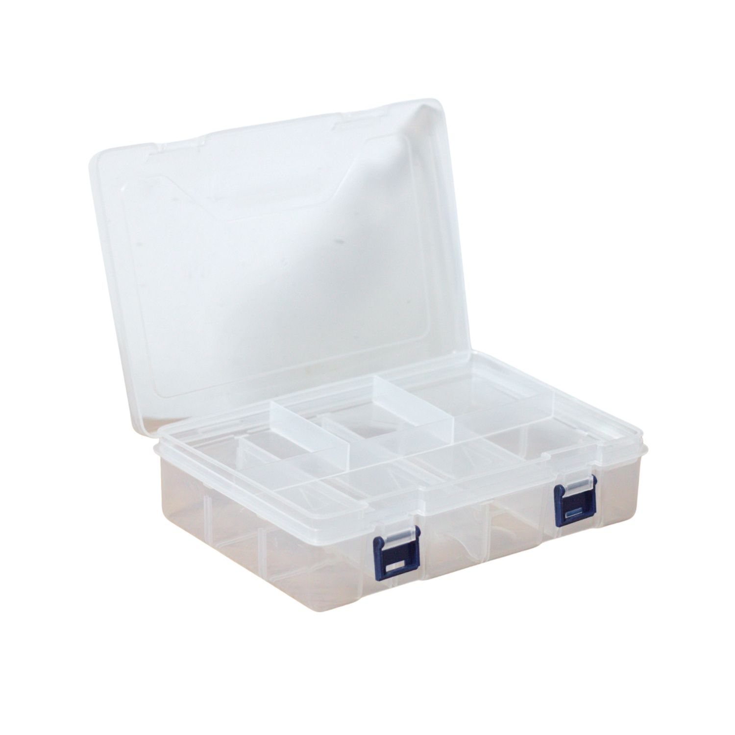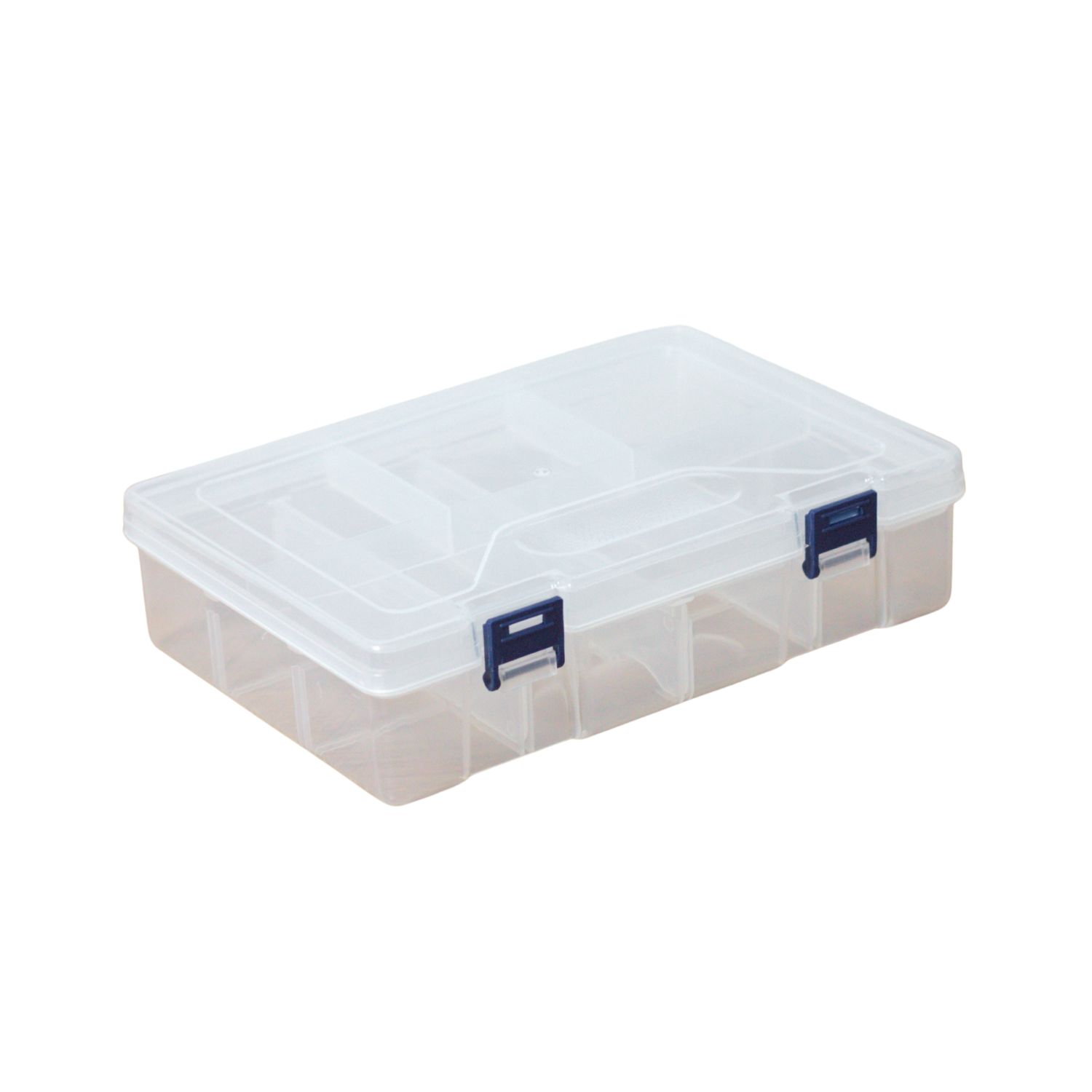 Fabricada en plástico transparente resistente. Cuenta con tapa de bisagras y cierre frontal asegurado para evitar aperturas accidentales. Incluye divisiones internas configuradas para almacenar componentes pequeños como tornillos, pines, cables, repuestos electrónicos o piezas de Arduino. Su diseño compacto permite transportarla y guardarla con facilidad, manteniendo la visibilidad completa del contenido.