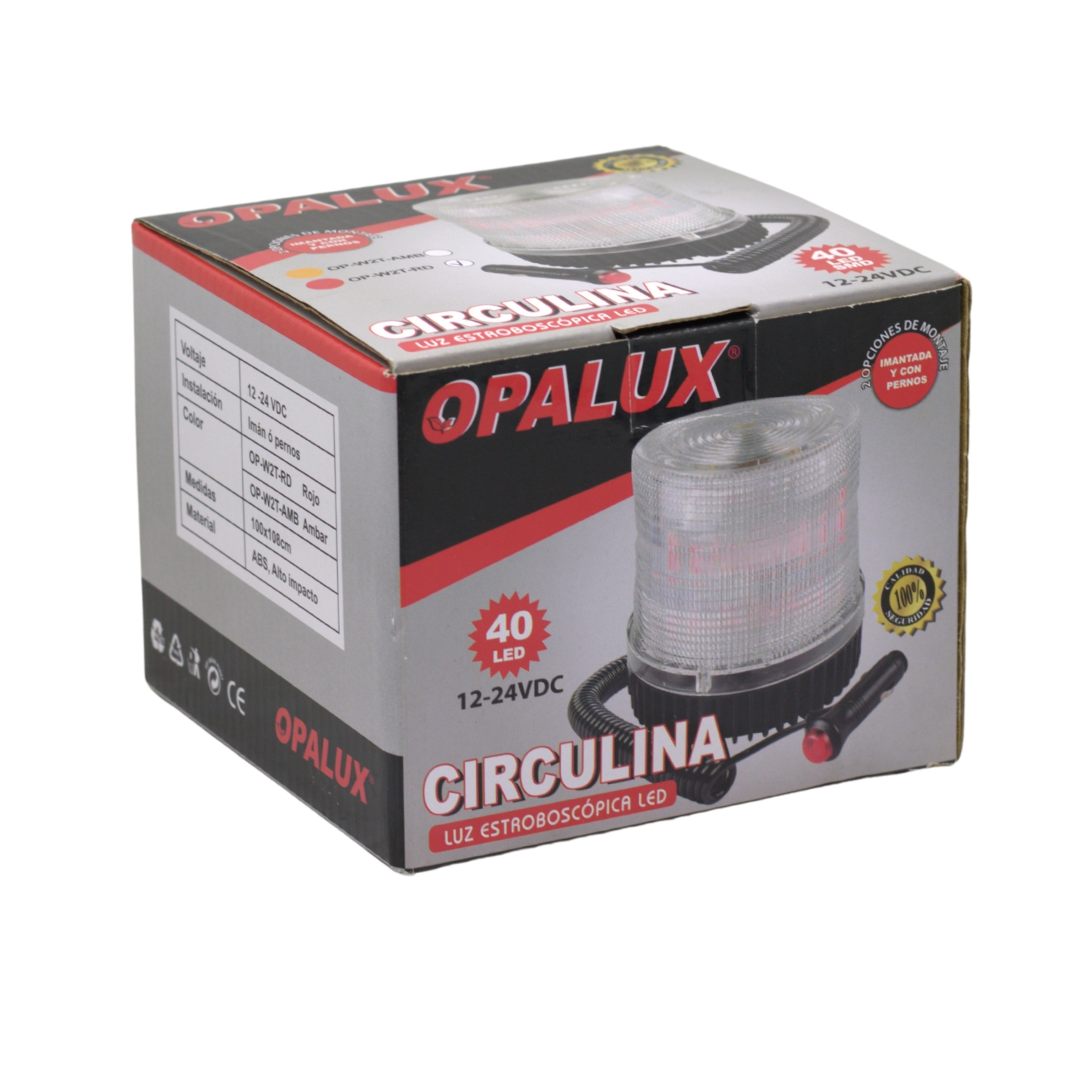 Integra 40 LEDs de alta potencia con dos modos de funcionamiento: estroboscópico y rotativo. Su base magnética permite fijación temporal sobre superficies metálicas, mientras que su construcción en ABS de alto impacto asegura resistencia y durabilidad en condiciones exigentes.