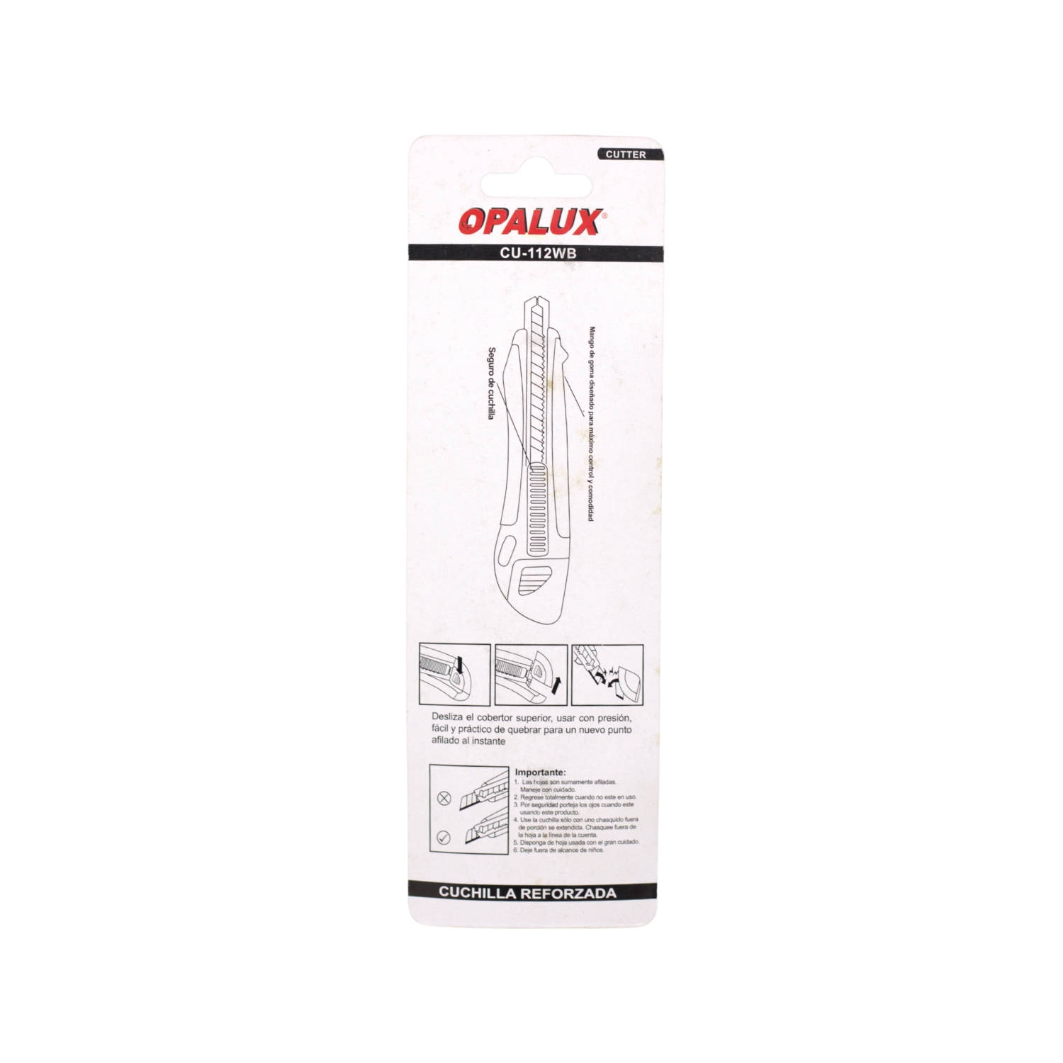 Este cutter está diseñado sin hoja incluida, permitiendo al usuario instalar el repuesto según su necesidad. Su estructura compacta de 14 cm de longitud total lo hace ideal para trabajos detallados.