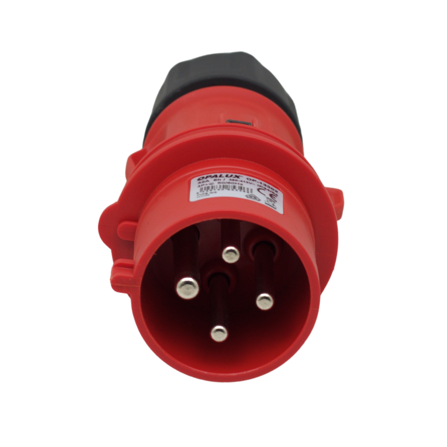 Este enchufe cuenta con una configuración de 3 polos + tierra (3P+T), soportando hasta 32A en un rango de tensión de 380 a 415V AC.