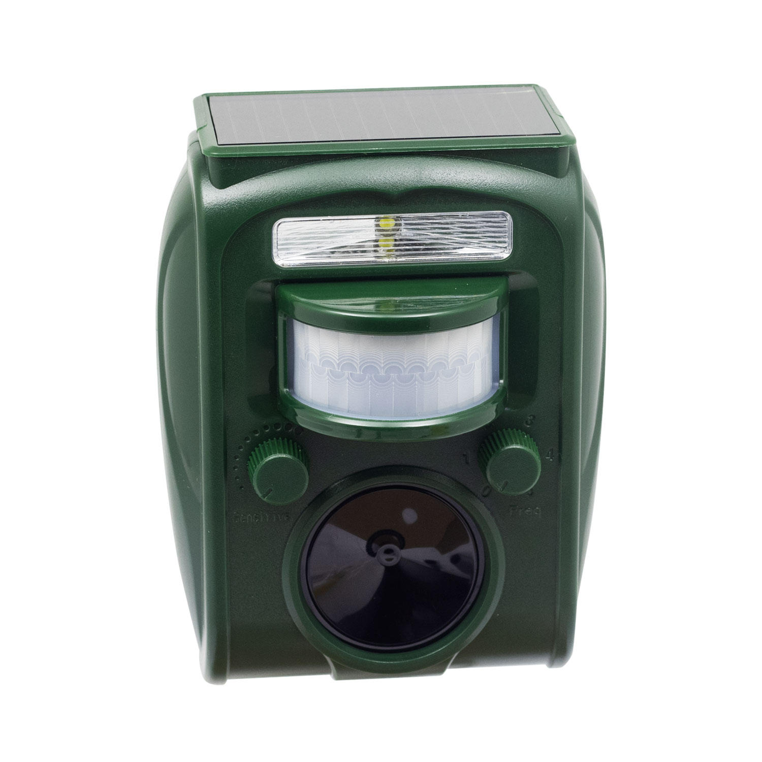 | FRECUENCIA ULTRASÓNICA | 0: OFF 1: 13.5 kHz – 19.5 kHz para repeler animales como ratones, ratas, perros, zorros, martas, etc. 2: 19.5 kHz – 24.5 kHz para repeler animales como gatos, mapaches, zorrillos, etc. 3: 24.5 kHz – 45.5 kHz para repeler animales como pájaros, murciélagos, etc. 4: Alarma y potente luz LED intermitente para asustar a los animales salvajes. 5: Funcionan en conjunto modo 1, modo 2, modelo 3 y encienden luz LED parpadeo fuerte. |