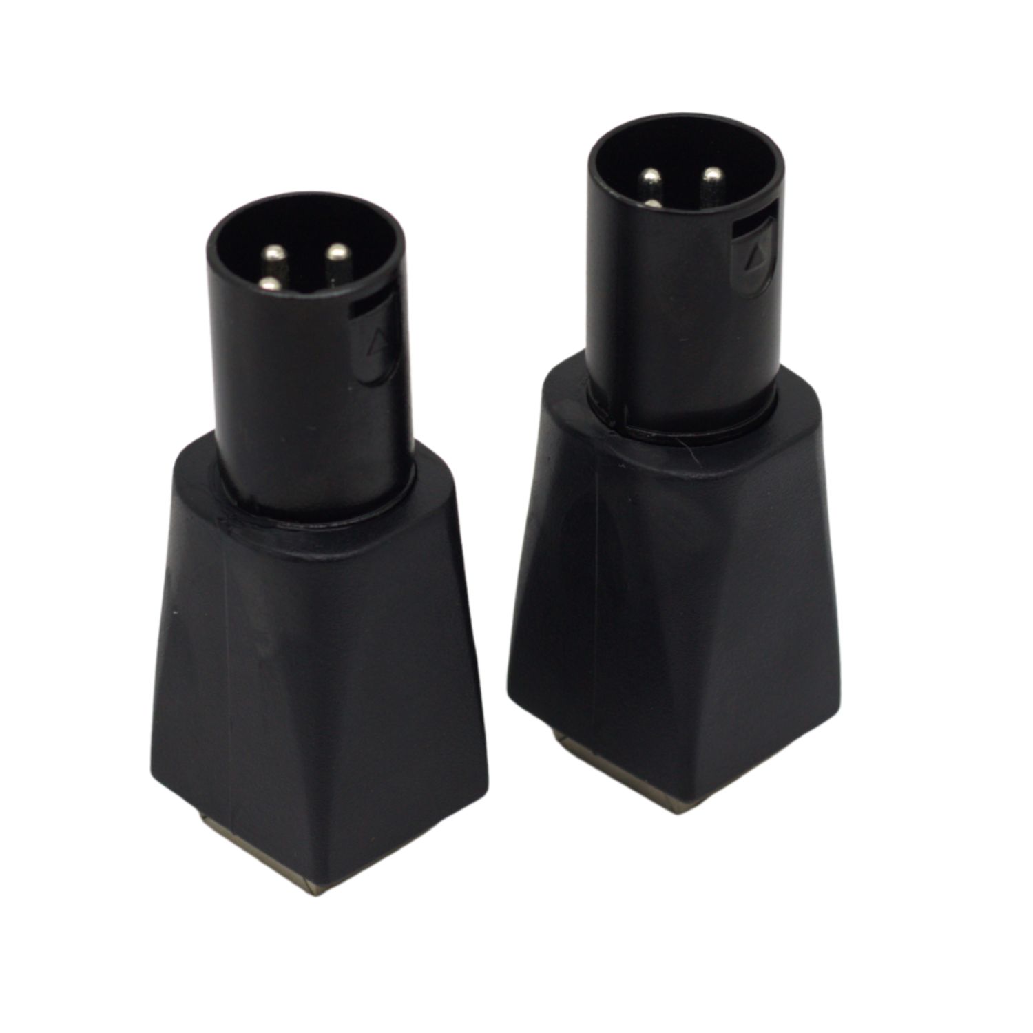 Adaptador que convierte una conexión RJ45 hembra en una salida XLR macho, permitiendo transmitir señales de audio balanceado a través de cables Ethernet (CAT5/CAT6).
