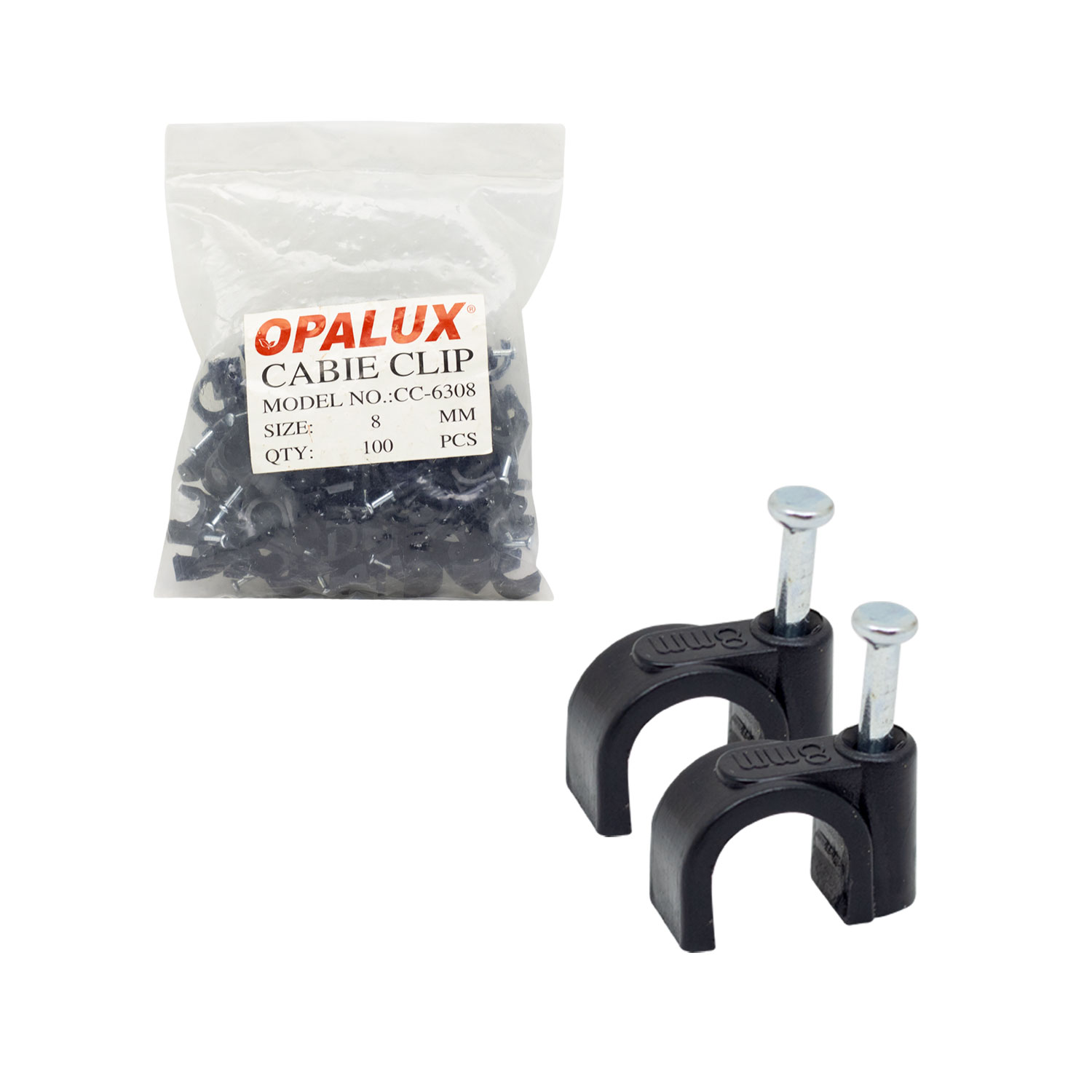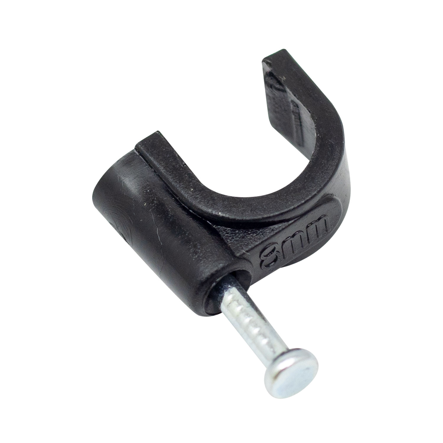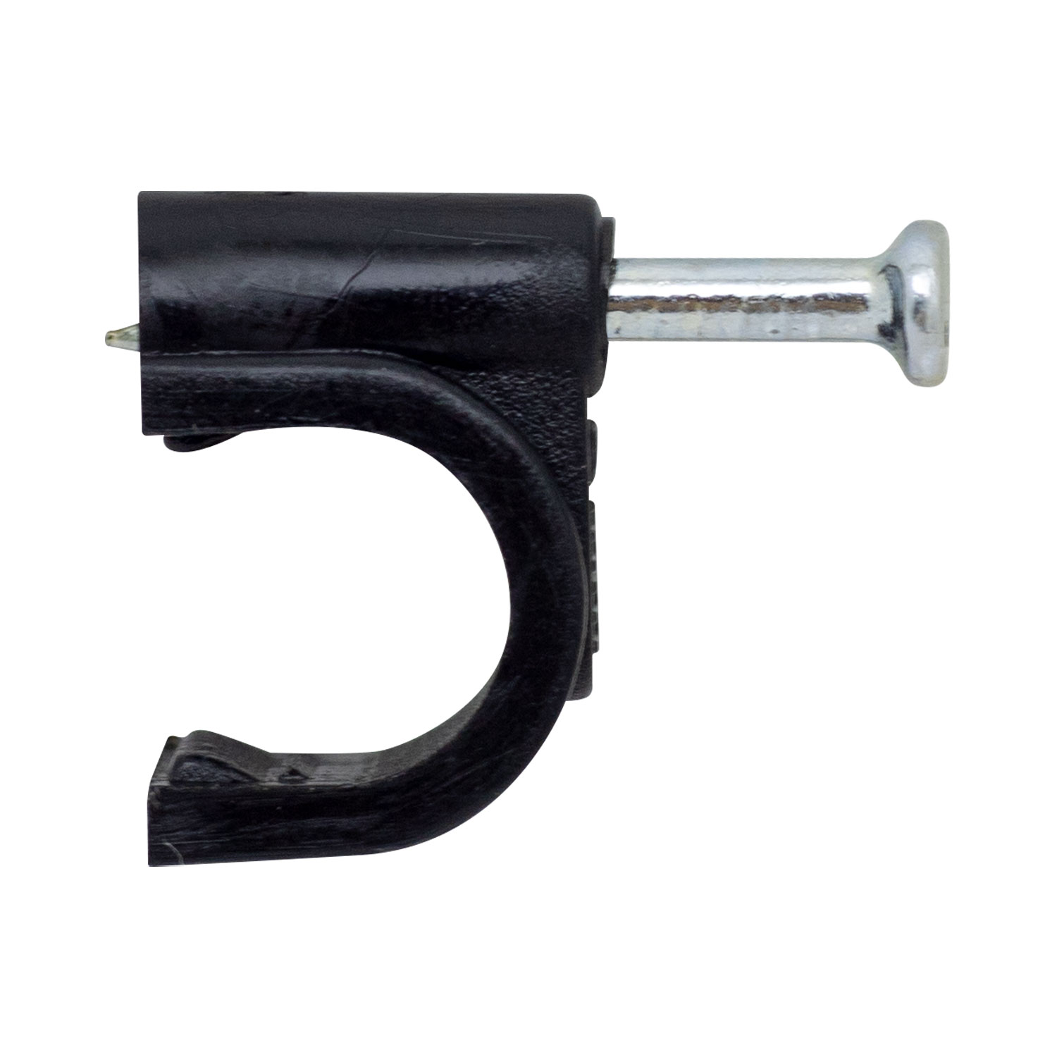 Grapa para sujetar cables con clavo de acero ideal para fijar en madera o cemento, diseñado para conductor eléctrico de casa.