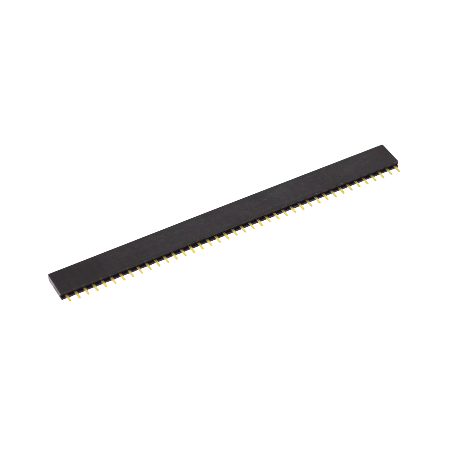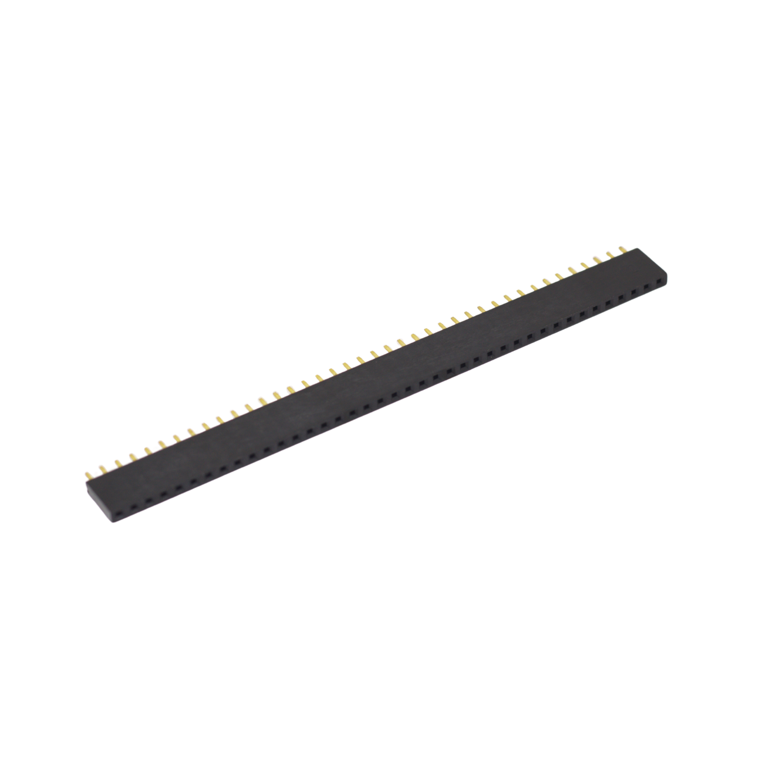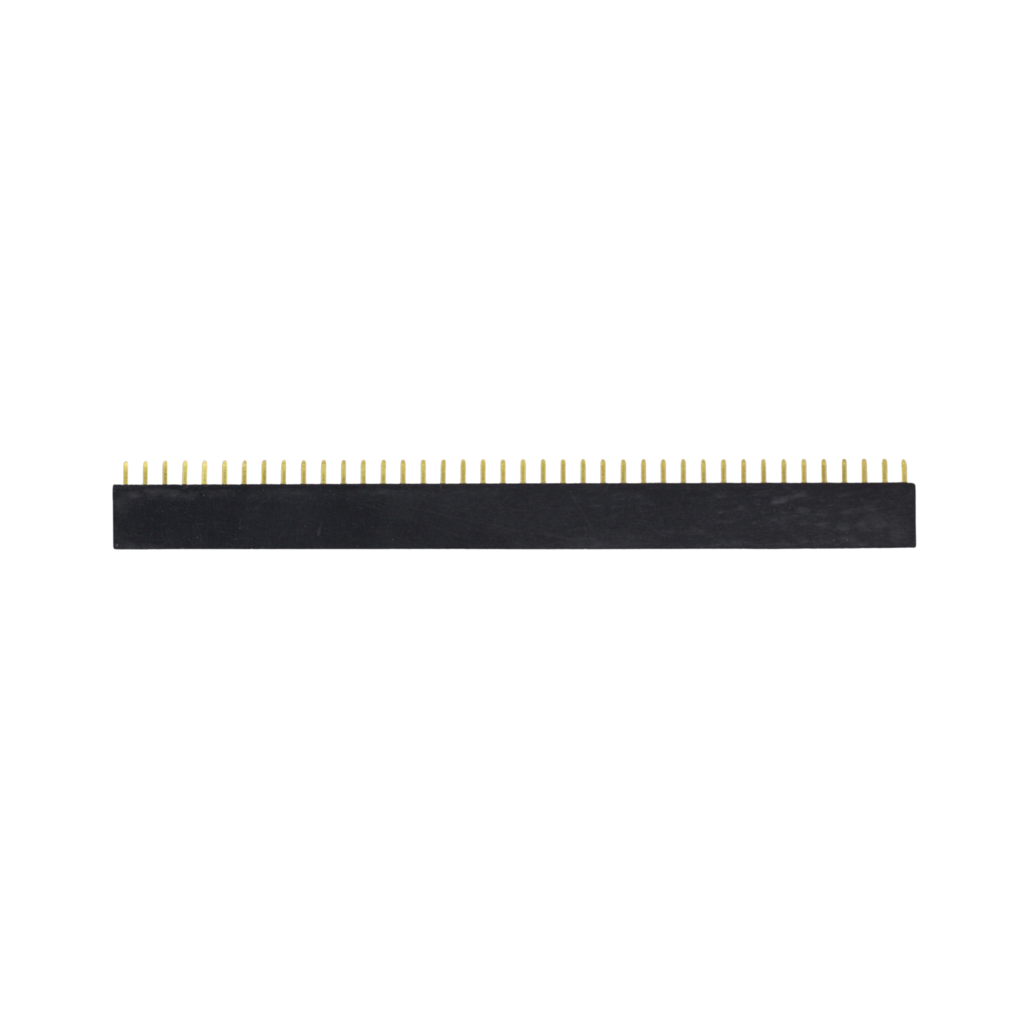 La regleta de 40 pines hembra es un componente indispensable para prototipado y montaje de circuitos electrónicos. Su diseño de montaje TH (through hole) permite soldarla directamente en PCB o usarla con cablecillos. Con un espaciado estándar de 2.54 mm, es totalmente compatible con protoboards, jumpers Dupont y perfboards. Además, puede cortarse fácilmente a la medida necesaria con una pinza, brindando flexibilidad y practicidad en tus proyectos.