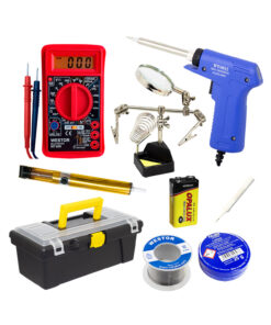 | INCLUYE | • 01 Cautín tipo pistola 30W/130W 220V AC • 01 Multímetro digital DT830L • 01 Caja de herramientas • 01 Soporte para cautín • 01 Succionador de soldadura metálico • 01 Rollo de soldadura 0.80mm 50gr • 01 Pasta para soldar 20gr • 01 Punta de repuesto para cautín • 01 Batería 9V |