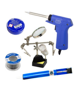 | INCLUYE | • 01 Cautín tipo pistola • 01 Soporte para cautín • 01 Succionador de soldadura metálico • 01 Estaño por rollo 50gr 0.8mm • 01 Pasta para soldar 20gr |