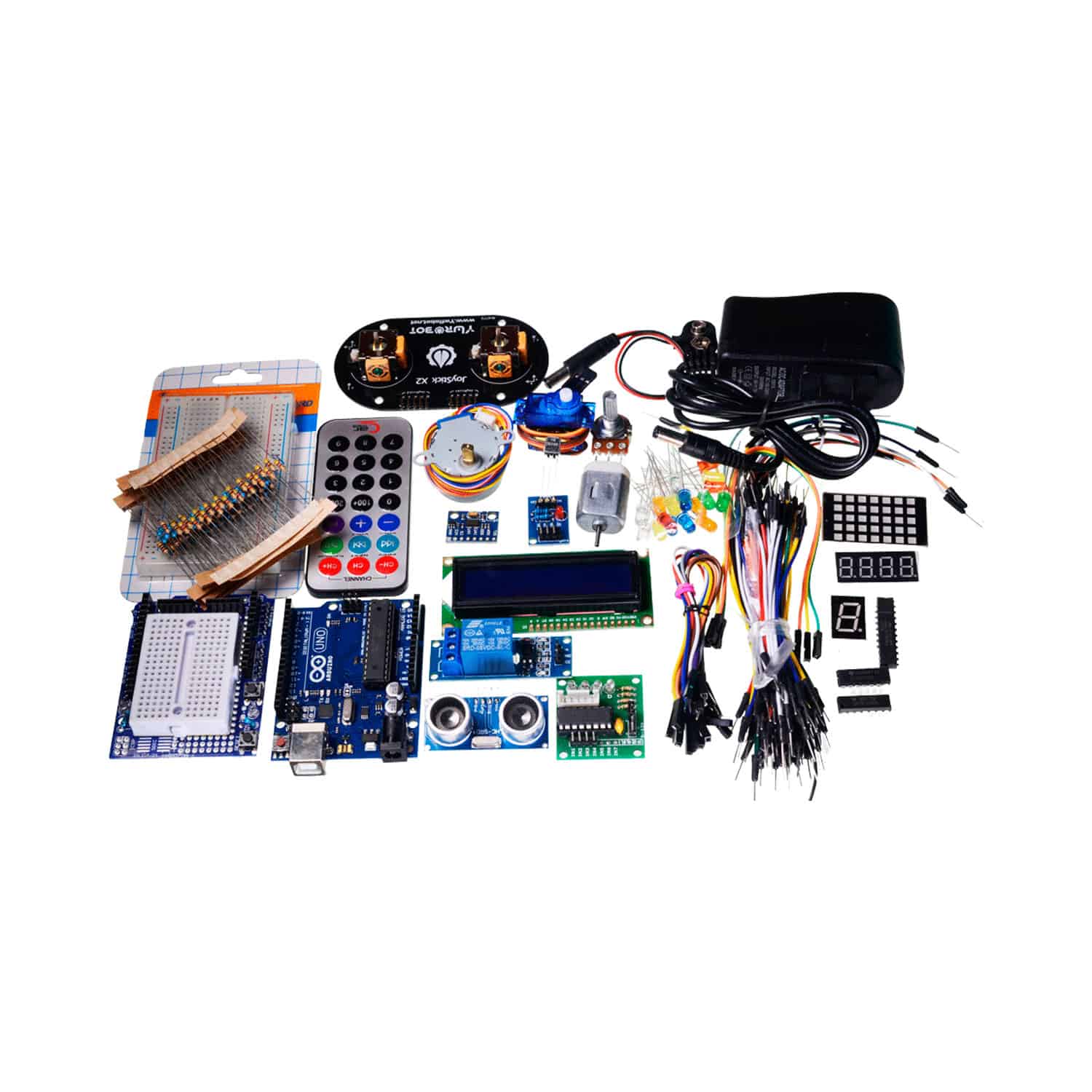 | INCLUYE | • 1 Arduino Uno R3 compatible • 1 USB cable • 1 Display Alfanumérico LCD 1602 • 1 Módulo Lector RC522 • 3 Tarjetas blancas • 1 Llavero • 1 Modulo Joystick • 1 4×4 Key • 1 Modulo RTC • 1 Sensor de nivel de agua • 1 Sensor de humedad • 1 Sensor RGB • 1 Módulo controlador de motor • 1 Motor de paso 5V + ULN2003 • 1 Módulo de canal • 1 tablero de Circuitos MB-102 • 65 Piezas de cable puente • 10 Piezas de cable F-M • 1 Módulo de sensor de sonido • 1 Control • 1 Potenciómetro de 10k • 1 Pantalla digital • 4 Pantalla digital • 1 Pantalla matricial de 8×8 • 1 Servomotor SG90 • 1 Zumbador • 2 Interruptores de inclinación de bola • 2 Piezas de fotorresistencia • 5 interruptores con tapas • 1 Broche de batería de 9 V • 15 piezas LED • 30 piezas de resistencia • 1 Sensor de llama • 1 Sensor de recepción de infrarrojos • 1 Registro de desplazamiento de 8 bits 74HC595 • 1 Sensor de temperatura en grados Celsius de precisión y bajo voltaje LM35DZ • 1 Caja plástica con divisiones |