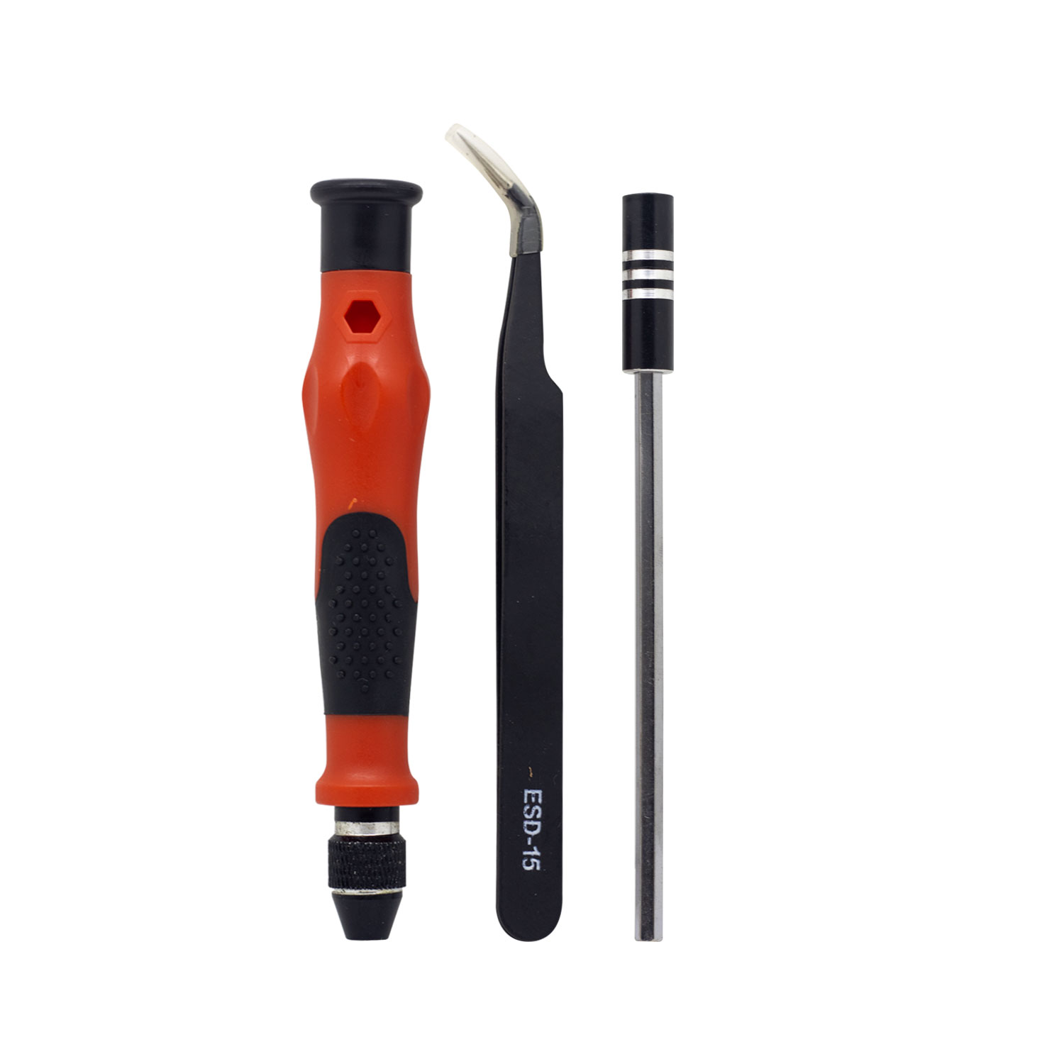 | KIT INCLUYE | • 1 x Mango 11.8cm • 1 x Barra de extensión 13cm • 1 x Barra de extensión 11cm • 7 x Punta copa hexagonal: M2.5, M3.0, M3.5, M4.0, M4.5, M5.0, M5.5 • 10 x Punta torx: T3, T4, T5, T6, T7, T8, T9, T10, T15, T20 • 8 x Punta hexagonal: H0.9, H1.3, H1.5, H2.0, H2.5, H3.0, H3.5, H4.0 • 5 x Punta phillips: 1.0, 1.5, 2.0, 2.5, 3.5 • 7 x Punta plano: 1.0, 1.5, 2.0, 2.5, 3.0, 3.5, 4.0 • 1 x Punta de triángulo: 2.0 • 1 x Punta de estrella: 0.8 • 1 x Punta Y: Y2.0 • 1 x Punta U: U2.6 • 1 x Punta SIM PIN: 0.8 |
