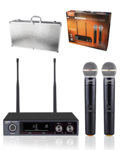 Dos micrófonos de solapa profesionales: ideal para entrevistas, presentaciones duales o grabaciones con múltiples participantes.
