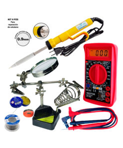 | TIPO | Multímetro Multitester + Cautín + Soporte lupa + punta p/cautín + Pasta + Estaño WT-MI-DT850KIT6 – Kit |