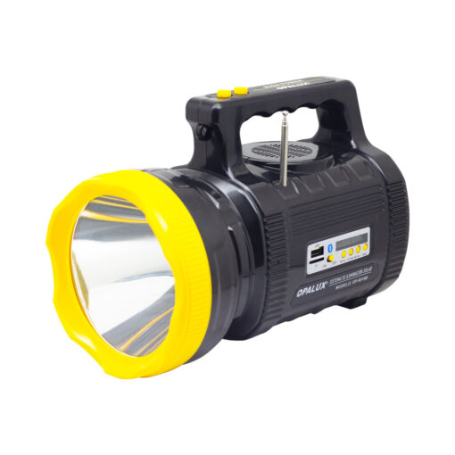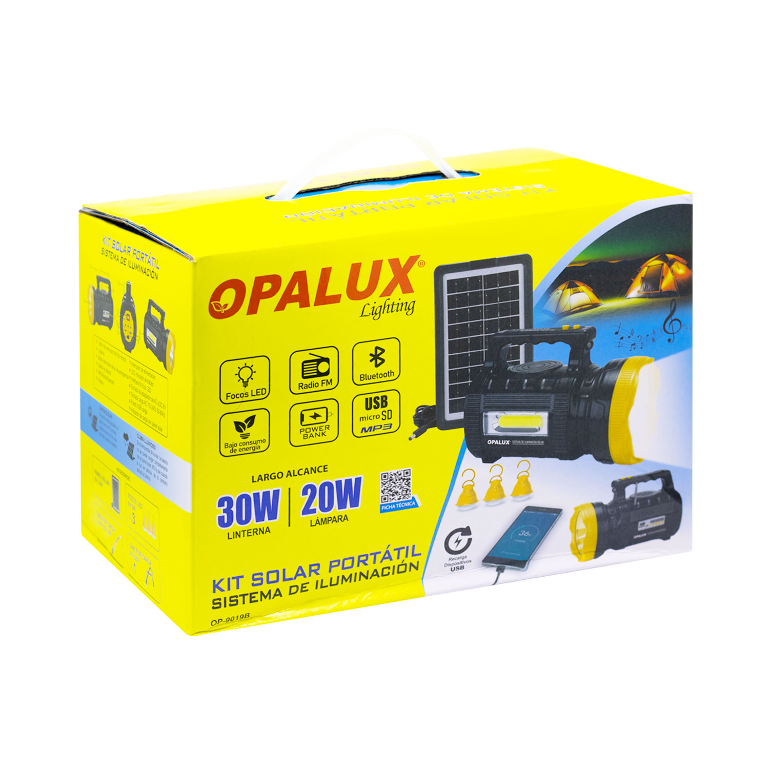 Solución ideal para zonas sin acceso constante a energía eléctrica o para emergencias. Diseñado para brindar iluminación y entretenimiento, incluye linterna de 30W, lámpara de 20W y tres focos LED independientes, todos recargables mediante un panel solar de 9V – 3.8W.