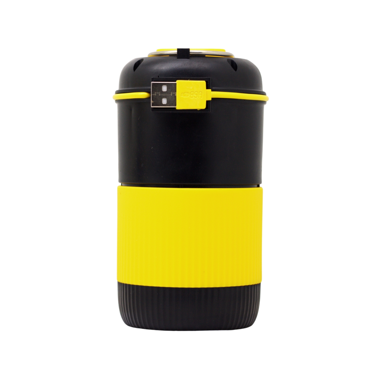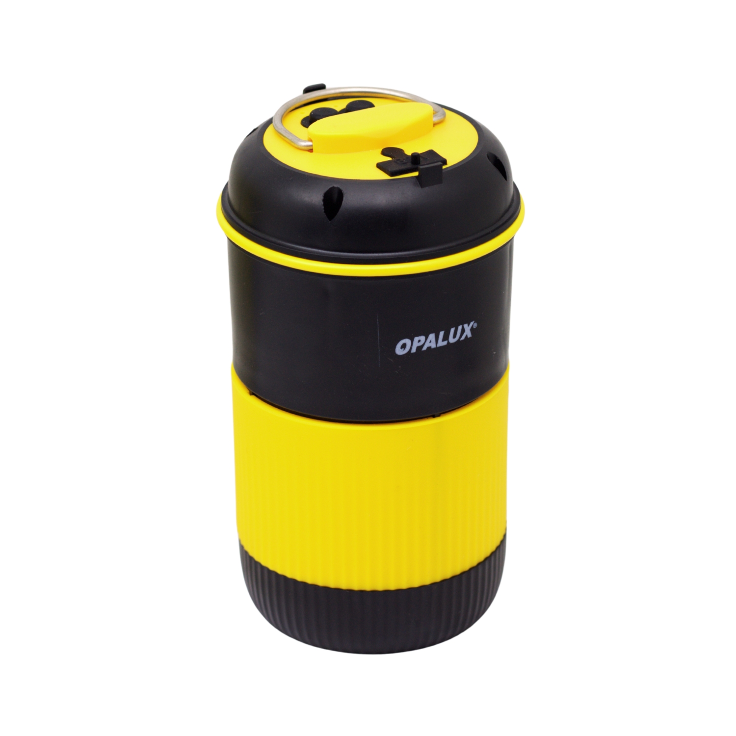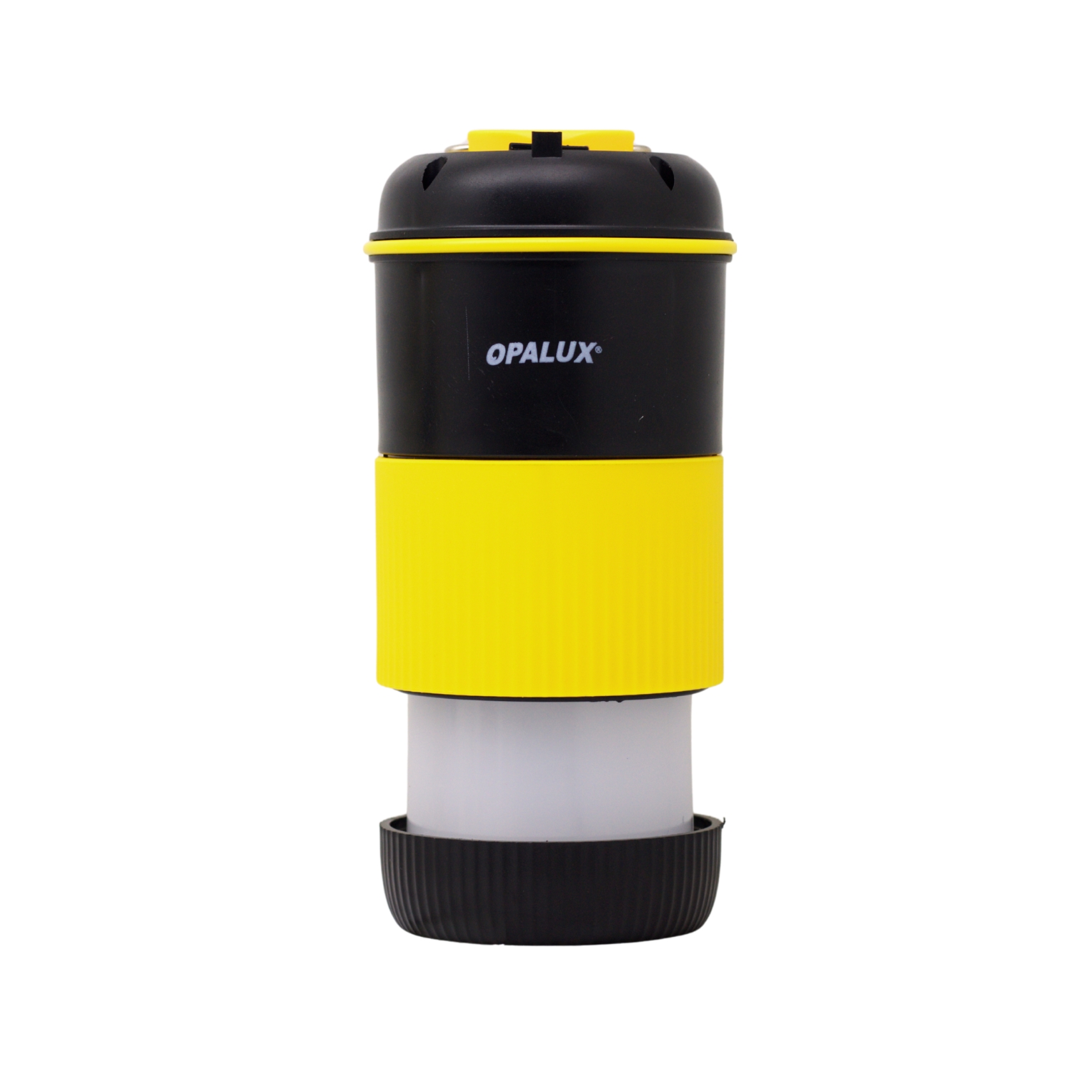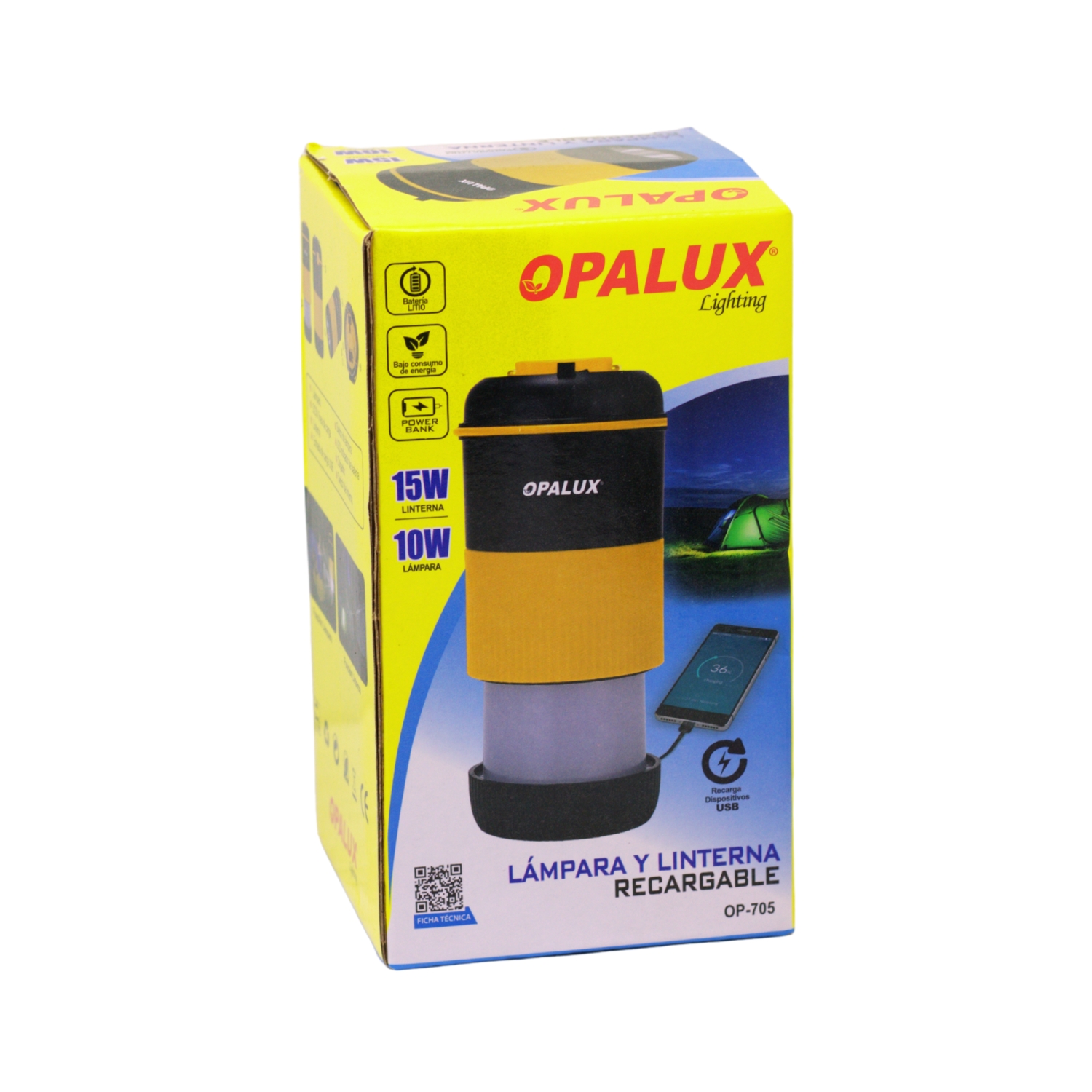 Incluye cable USB-A incorporado para recarga y un puerto USB adicional que funciona como power bank. El equipo presenta 5 modos de iluminación (alta, baja y estrobo en linterna, alta y baja en lámpara), además de botones independientes, colgador metálico y cuerpo retráctil. Sus dimensiones son 70mm de diámetro, 170mm de largo en modo lámpara y 135mm con la linterna retraída.