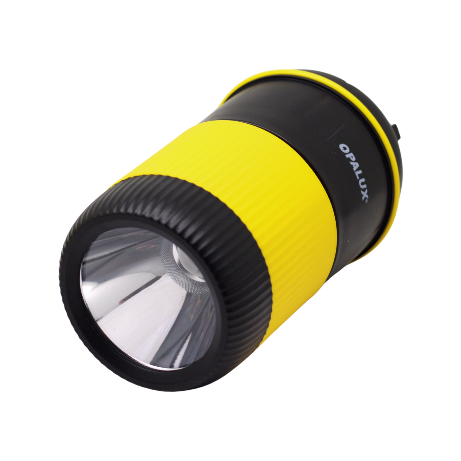 LED SMD de 15W para la linterna y uno de 10W para la lámpara, ofreciendo un total de 300 lúmenes con temperatura de color 6000K. Incorpora una batería recargable de 3.7V y 4500mAh, que brinda entre 4 y 10 horas de autonomía según el modo de uso.