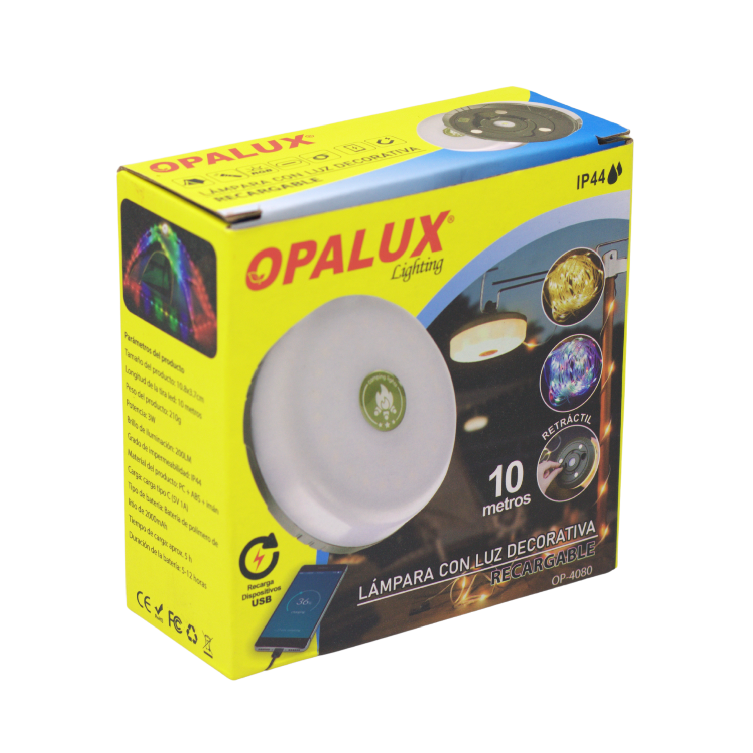 Con un brillo de 200 lúmenes, protección IP44 y materiales resistentes (PC + ABS + imán), la OP-4080 es perfecta para interiores y exteriores, como jardines, terrazas, habitaciones o eventos especiales.