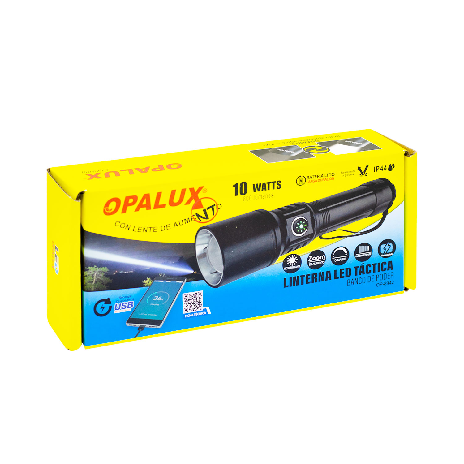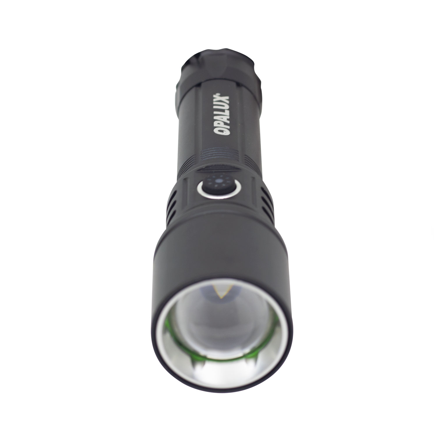 Cuenta con zoom ajustable, función de brillo alto y SOS, y un switch de encendido luminoso para facilitar su uso en la oscuridad. Fabricada con cuerpo de aluminio resistente, ofrece protección IP44 contra salpicaduras y polvo. Su batería de litio recargable 18650 de 1200mAh brinda un tiempo de uso óptimo y se carga en solo 2 horas mediante cable USB.