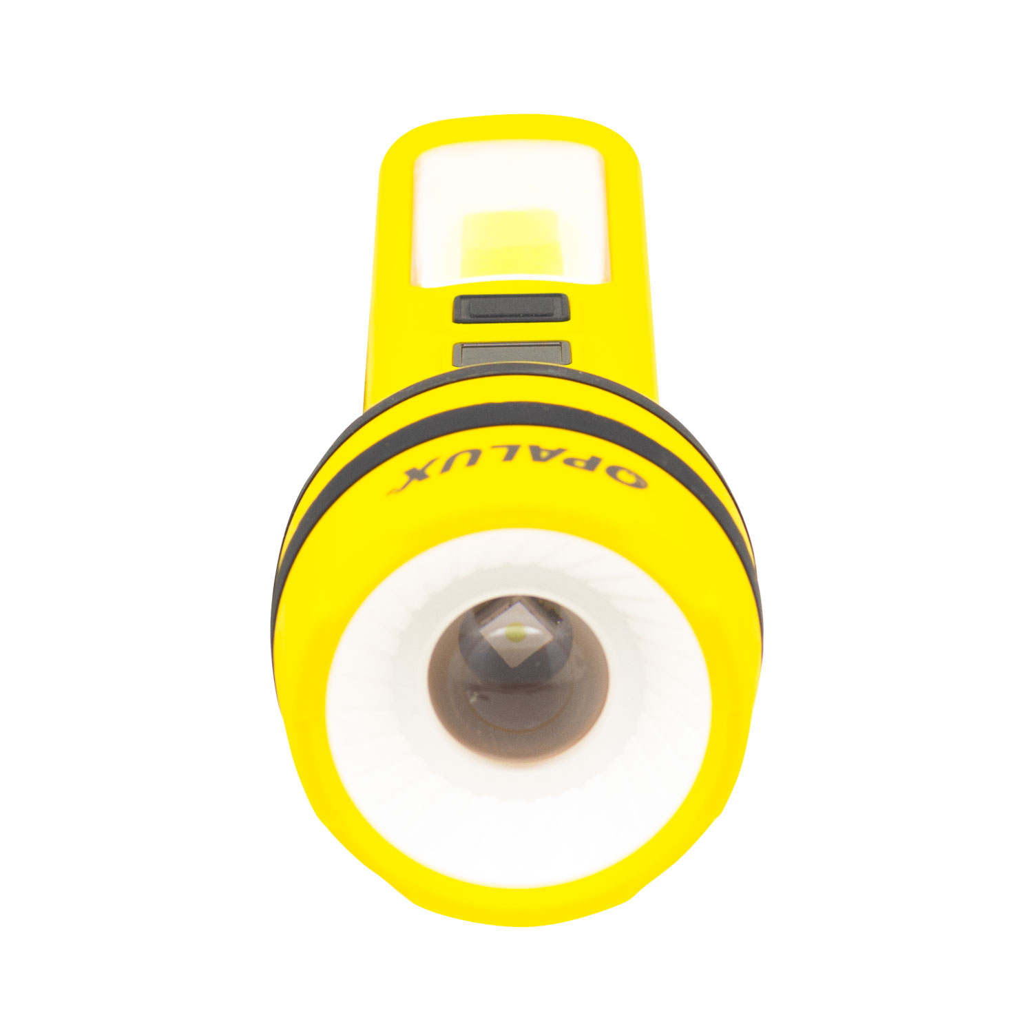 Combina practicidad, potencia y autonomía en un solo dispositivo. Cuenta con dos tipos de iluminación: una linterna frontal de 5W con 3 modos (alta, baja y estrobo) y una lámpara lateral COB de luz blanca para una iluminación más amplia. Ideal para uso doméstico, camping o cortes de energía.