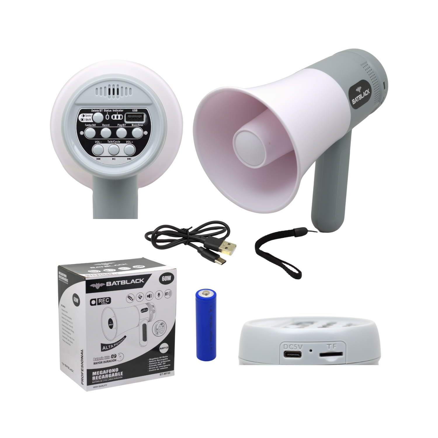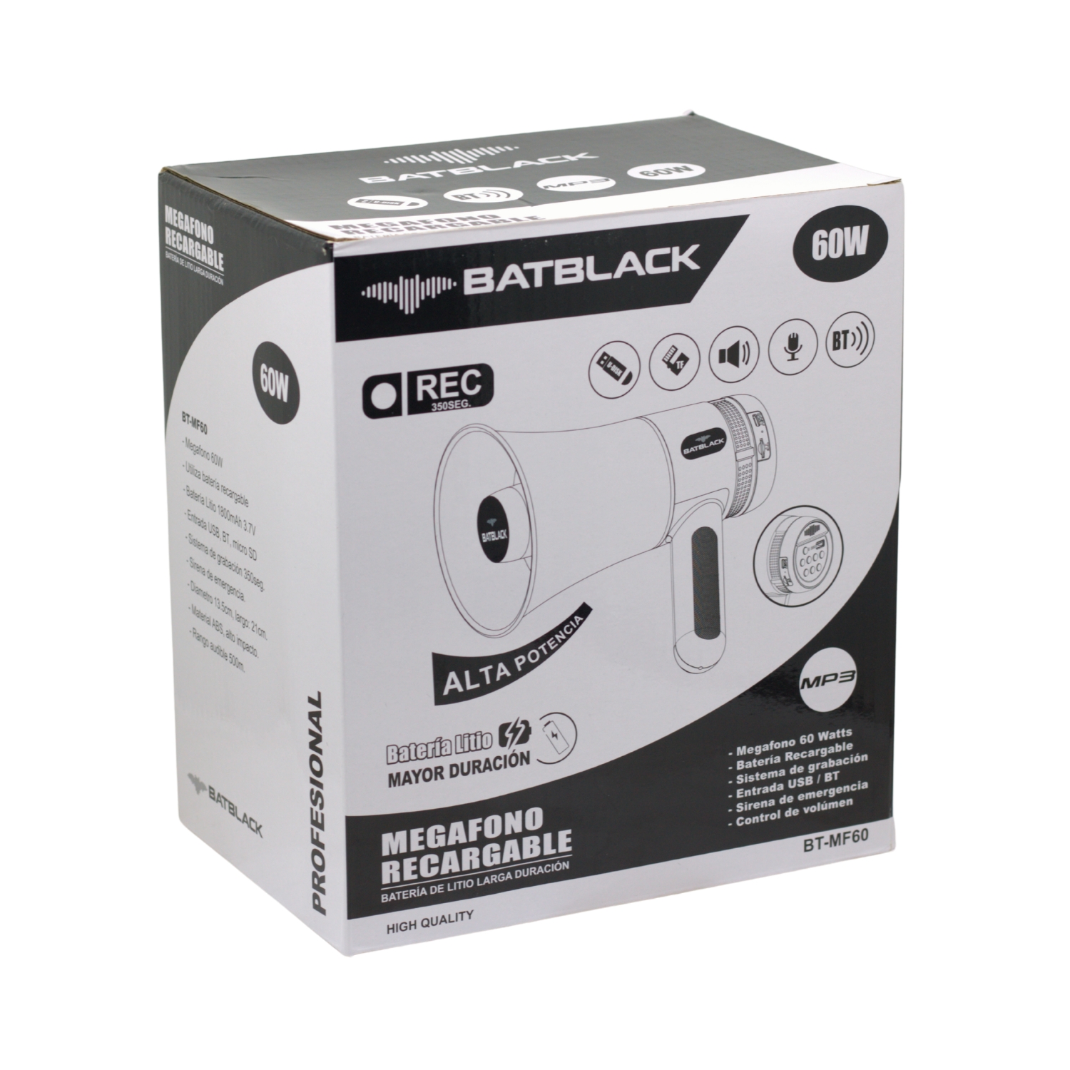 Megáfono 60W Recargable con USB/Bluetooth/SD/Grabación BT-MF60 BATBLACK