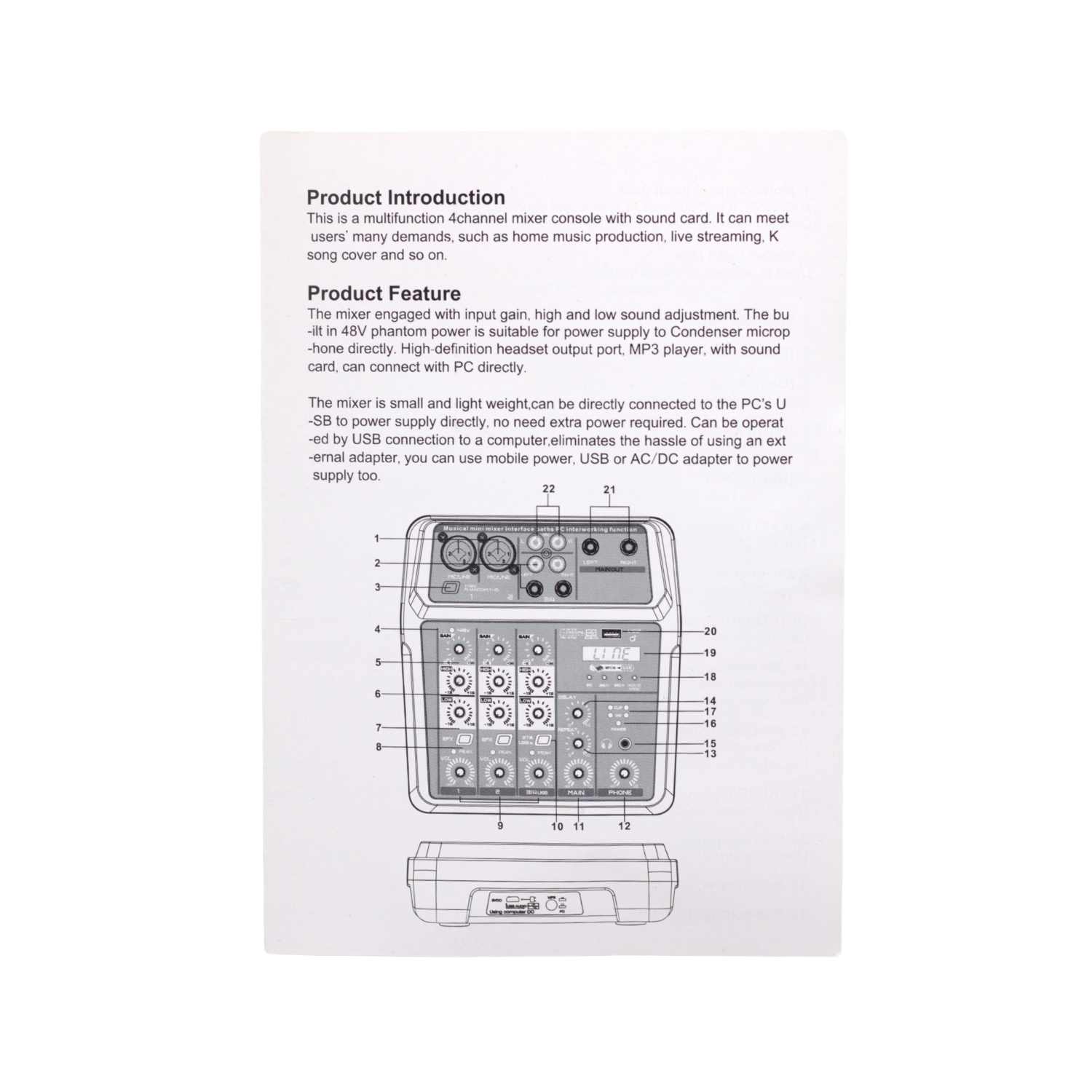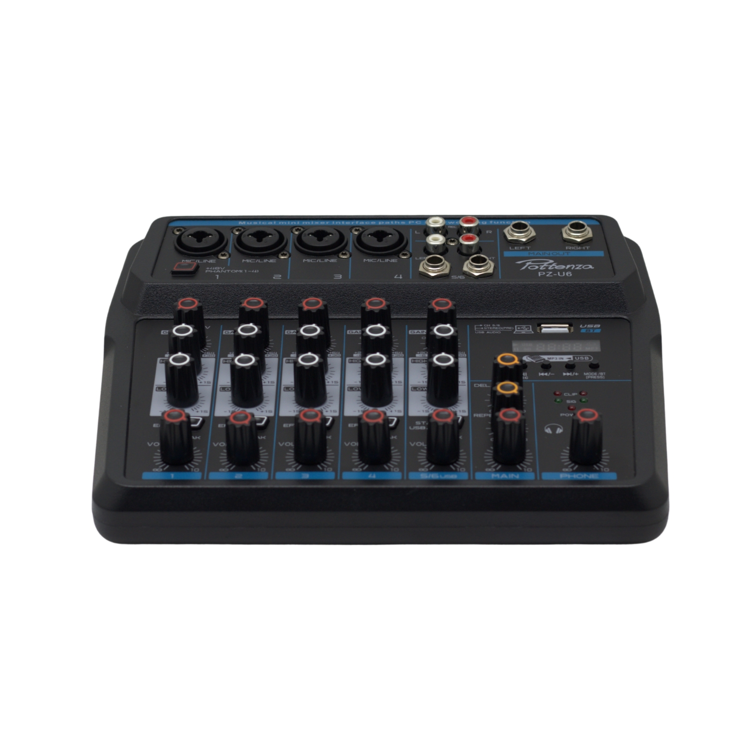 Además, incorpora Bluetooth para reproducción inalámbrica desde dispositivos móviles y phantom power para micrófonos de condensador, ampliando sus posibilidades de uso. Su diseño intuitivo facilita la operación tanto para usuarios principiantes como avanzados.