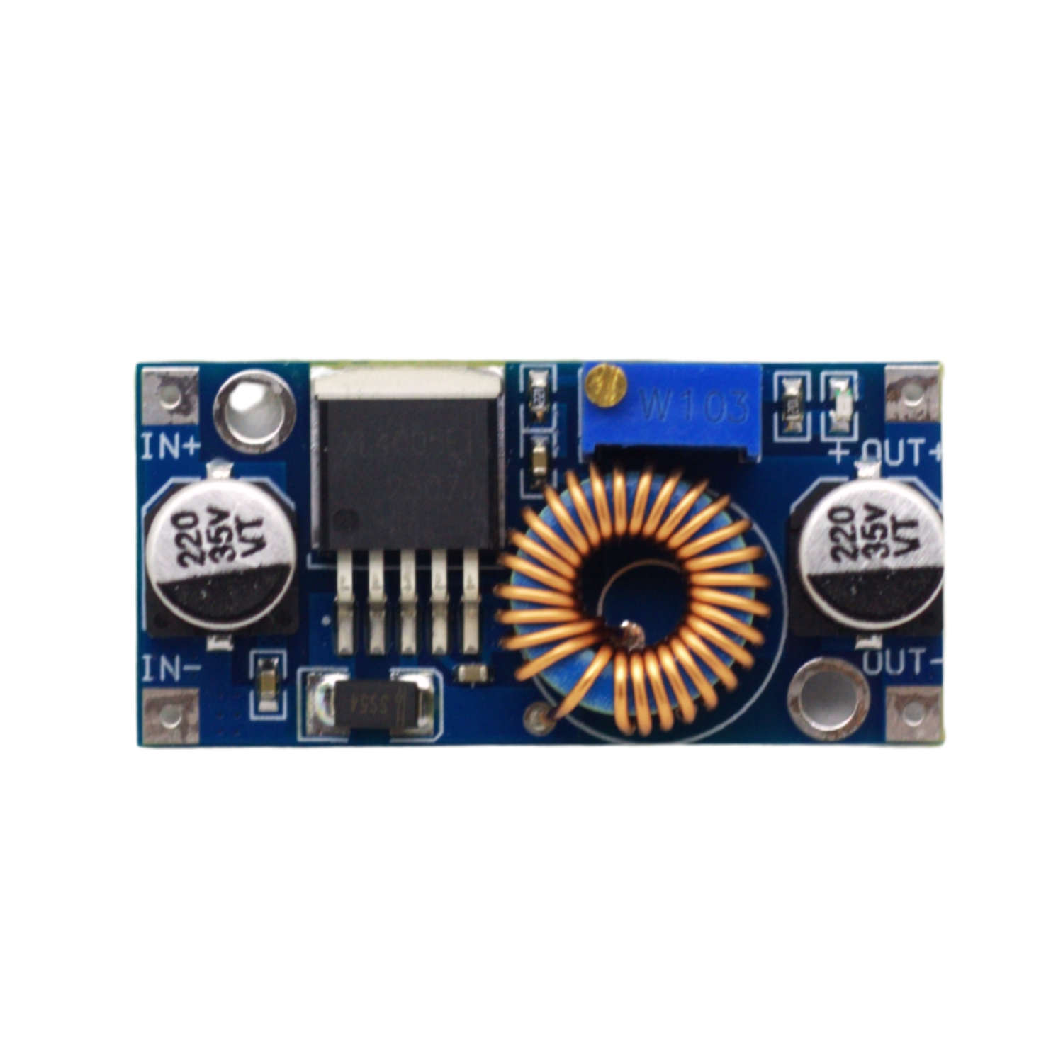 Este módulo utiliza el regulador conmutado XL4005, un convertidor DC-DC tipo Buck (reductor) capaz de entregar un voltaje de salida constante incluso ante variaciones de carga o entrada.