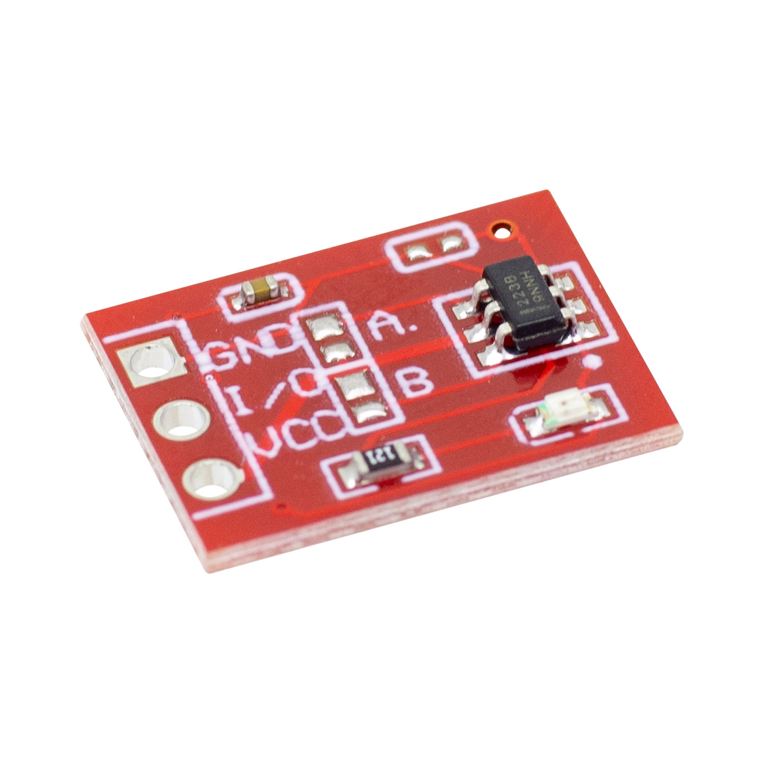 Este módulo permite configurar distintos modos de funcionamiento, incluyendo activación momentánea o con autobloqueo, y salida en nivel alto o bajo según la necesidad del proyecto. Es ampliamente utilizado en sistemas de automatización, control táctil, domótica y dispositivos electrónicos modernos donde se busca confiabilidad y facilidad de integración.