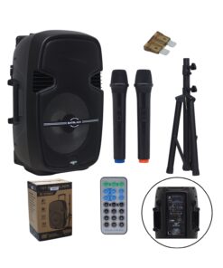 Incluye batería recargable de 12V/7Ah, ecualizador gráfico de 5 bandas, entrada para micrófono tipo XLR, fusible de protección y múltiples funciones integradas. Su construcción está pensada para uso continuo, tanto en interiores como en exteriores.