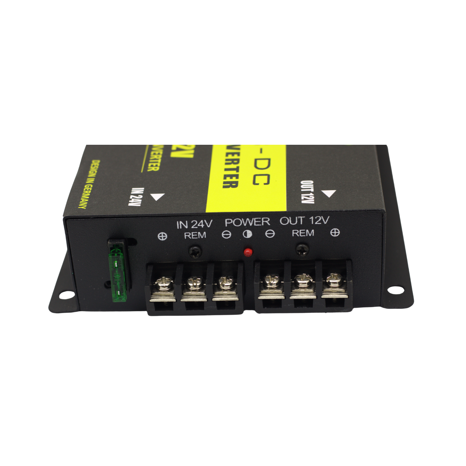 Solución robusta y confiable diseñada para aplicaciones de alto consumo energético. Convierte de manera eficiente una entrada de 20-24VDC a 12VDC, entregando hasta 100 amperios de salida y una potencia nominal de 2400W.
