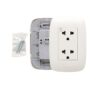 Tomacorriente doble universal para uso residencial, fabricado en material ABS de alta resistencia. Soporta hasta 16A y 250V, con sistema de protección interna mediante obturadores de seguridad en los alveolos.